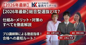 「総合型選抜経験 × 社会人経験」を持つ伴走者が、受験生の背景を単なるプロフィール情報ではなく、志望理由書や面接で届く強みに再編集することが、慶教ゼミナールの核です。合格実績を見る →